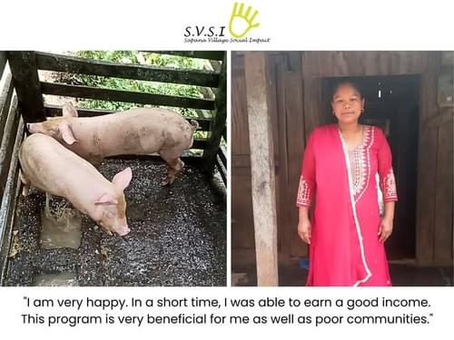 Sabina Chepang, a mother from a marginalized Chepang community in Chitwan, has significantly improved her family’s livelihood through support from the CCDP Project implemented by Sapana Village Social Impact (SVSI). Previously struggling to meet basic household needs due to the lack of a stable income source, she benefited from the project’s Income Generating Support initiative, through which she received two piglets. With careful management and dedication, she successfully raised the livestock and recently sold one weighing 117 kg, generating an income of NPR 60,000. This earning has contributed to improved financial stability and strengthened her household’s resilience. Her experience demonstrates how targeted livelihood interventions can effectively support vulnerable families in achieving sustainable income and enhanced well-being.
